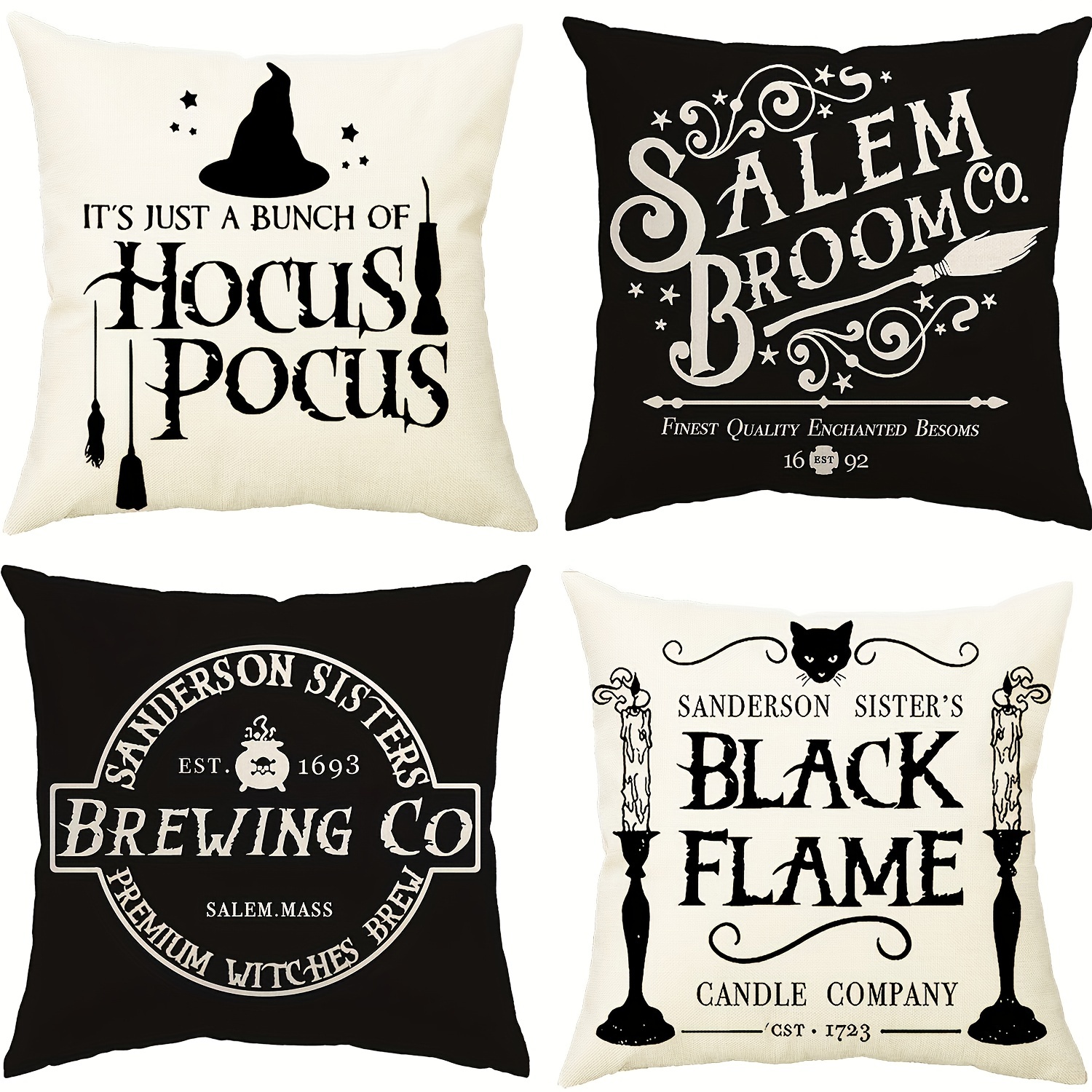 4pcs Halloween Linen Blend Throw Pillow Case, Square Cushion Case, Decorative Pillow Cover For Living Room Bedroom Couch Sofa, Home Decor Room Decor Party Decor Single-Sided Printed No Pillow Insert 18inch X 18inch