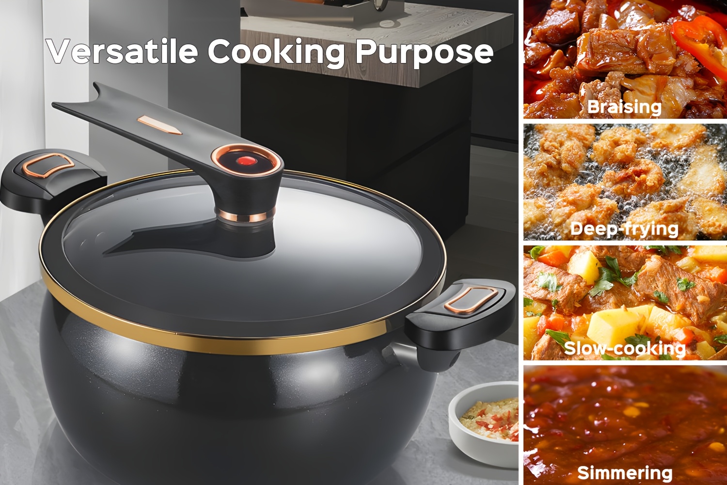 Large-Capacity Soup Pot with a Twist-Lock Handle for Quick Cooking, Non-Stick Pot 8.45QT Multi-Function Cooking Pot, Gas Stove, Open Fire and Induction Cooker, Universal Stew Pot for Homes, Restaurants, Hotels, Fast Food Stor