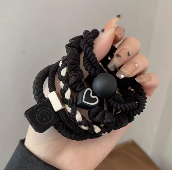 Apportez une touche d’élégance à votre coiffure avec ce lot de 5 élastiques à cheveux haut de gamme, alliant style, résistance et confort.