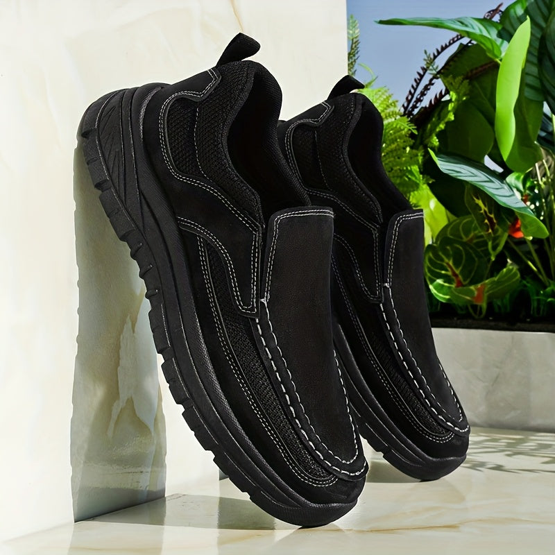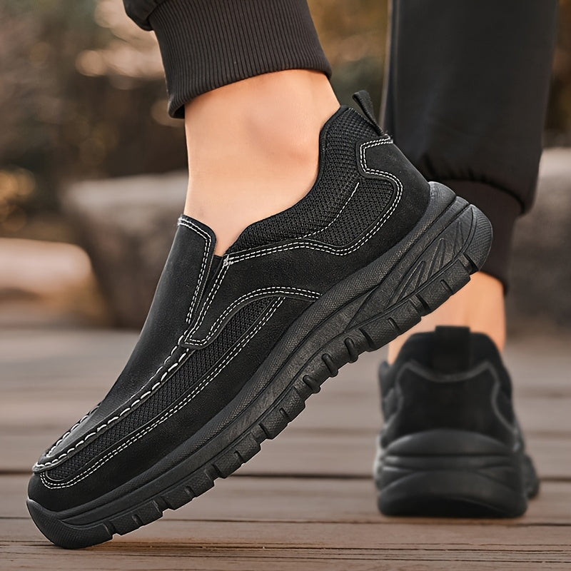 Men's Slip-On Loafers - Comfortable Casual Business Shoes, Yellow & Beige Two-Tone Design, Breathable Mesh Lining, Durable PVC Sole, Round Toe, All-Season Wear for Everyday and Leisure, Chunky Shoes