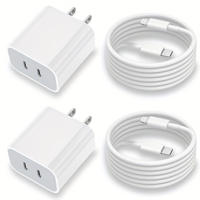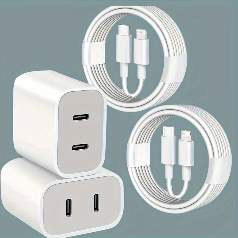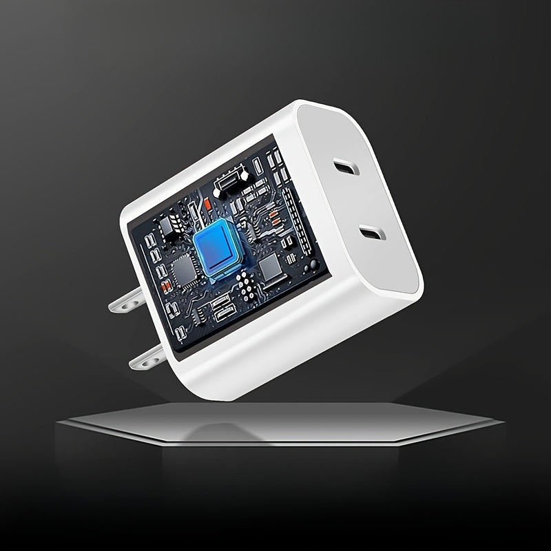UKETO Dual Port PD Fast Charger, USB Type-C Wall Charging Adapter, US Plug Power Supply for iPhone 14/13/12/11/XS/XR/X, iPad - 20W Travel Power Adapter with 2x 6.6FT USB-C Cables, Fast Charging Kit